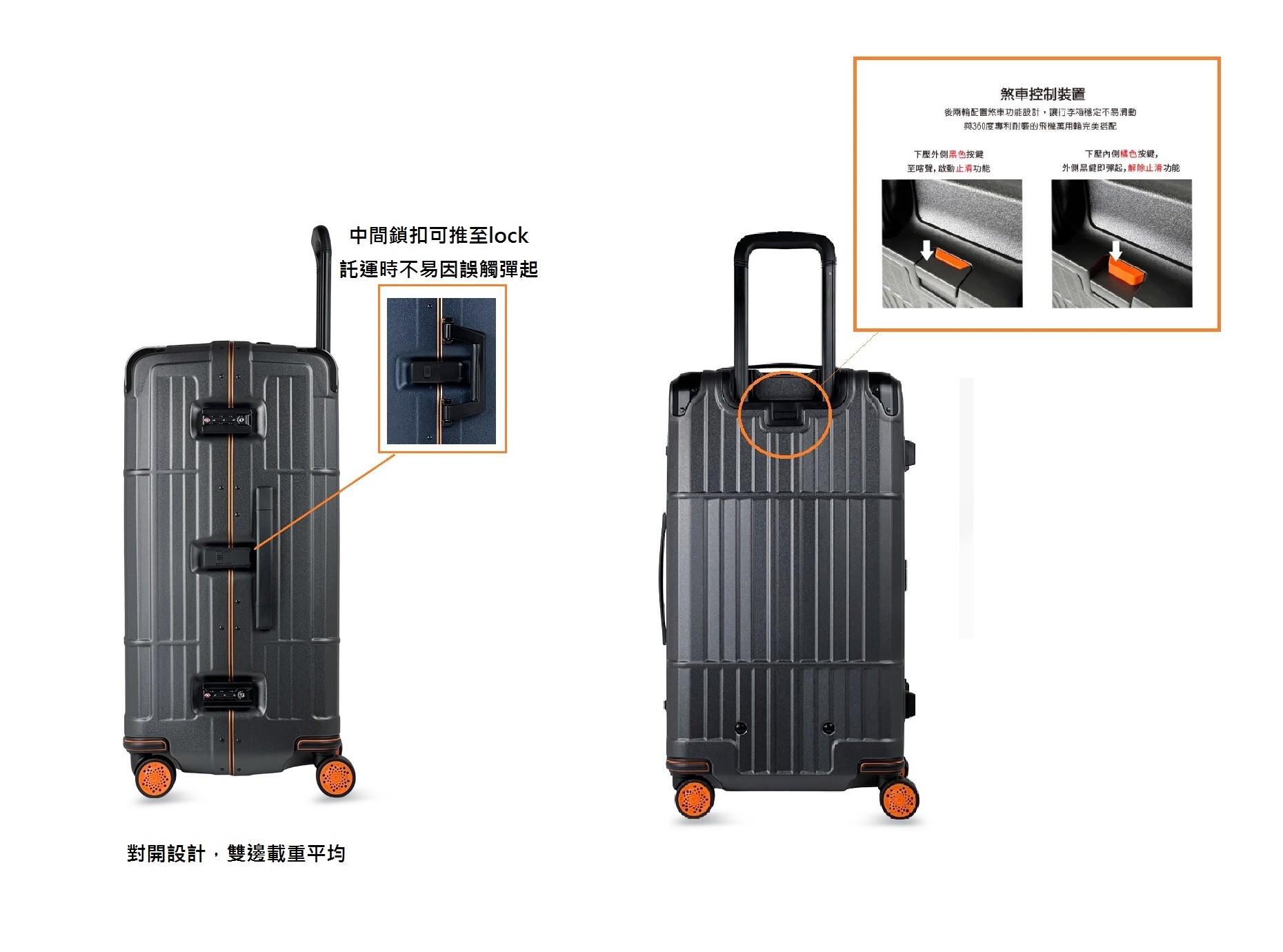 大容量異形箱系列頂級細鋁框 橘框剎車 款 HD-515S/29吋