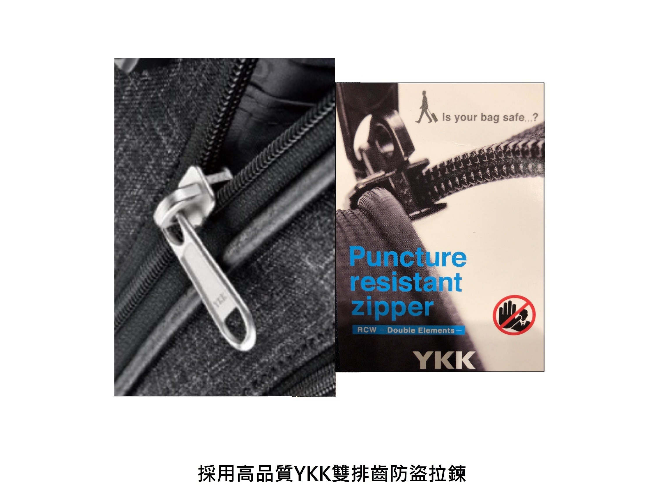 前片上下一拉鍊口袋與一拉鍊層,背後還有一拉鍊收納袋,方便隨時拿取物品。